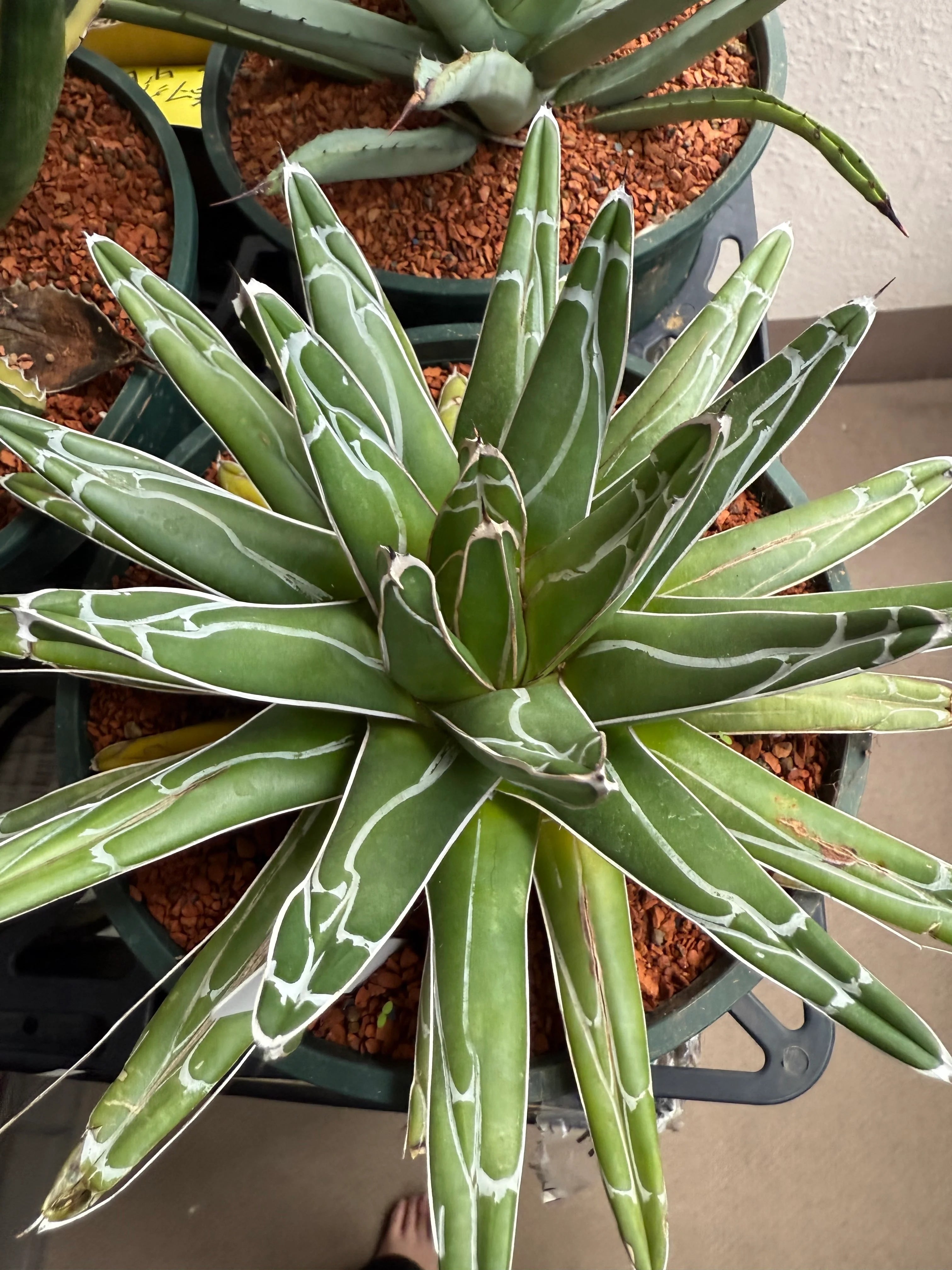 このアガベ 笹ノ雪は、極上の美しさを持つ特別な品です。大きな葉に白い模様が浮かび上がり、その姿はまさに芸術的です。美しい模様は、育てるたびに新たな魅力を引き出してくれます。